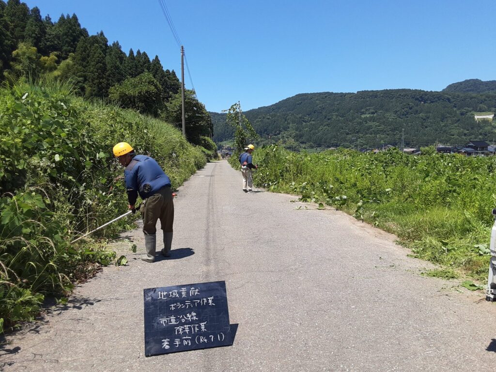 毎年、当作業所及び車庫へのアクセス道路(市道)の除草を1kmに渡り行います。